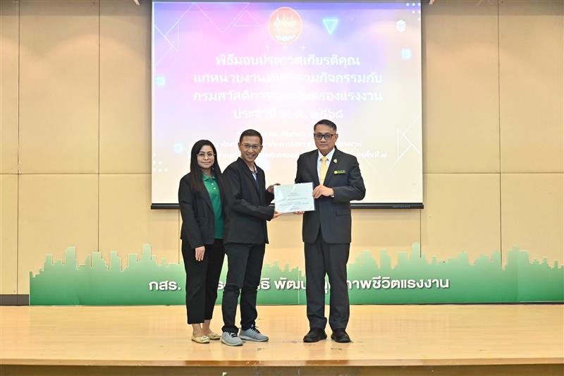 เมื่อวันที่ 19 มีนาคม 2568 นางเบ็ญจมาศ พุ่มช้าง ผู้อำนวยการสำนักงานสวัสดิการและคุ้มครองแรงงาน กรุงเทพมหานคร เขตพื้นที่ 7 พร้อมด้วยเจ้าหน้าที่ ได้เข้าร่วมพิธีมอบเกียรติบัตรแก่สถานประกอบกิจการดีเด่นหน่วยงานด้านจิตอาสา ประจำปี 2568